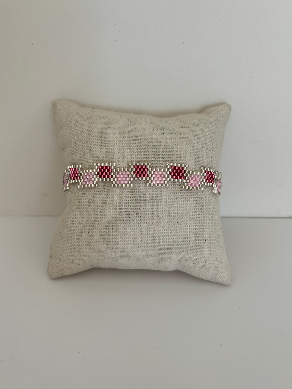 Bracelet 6 rangs carré argenté rose pale et rose métal