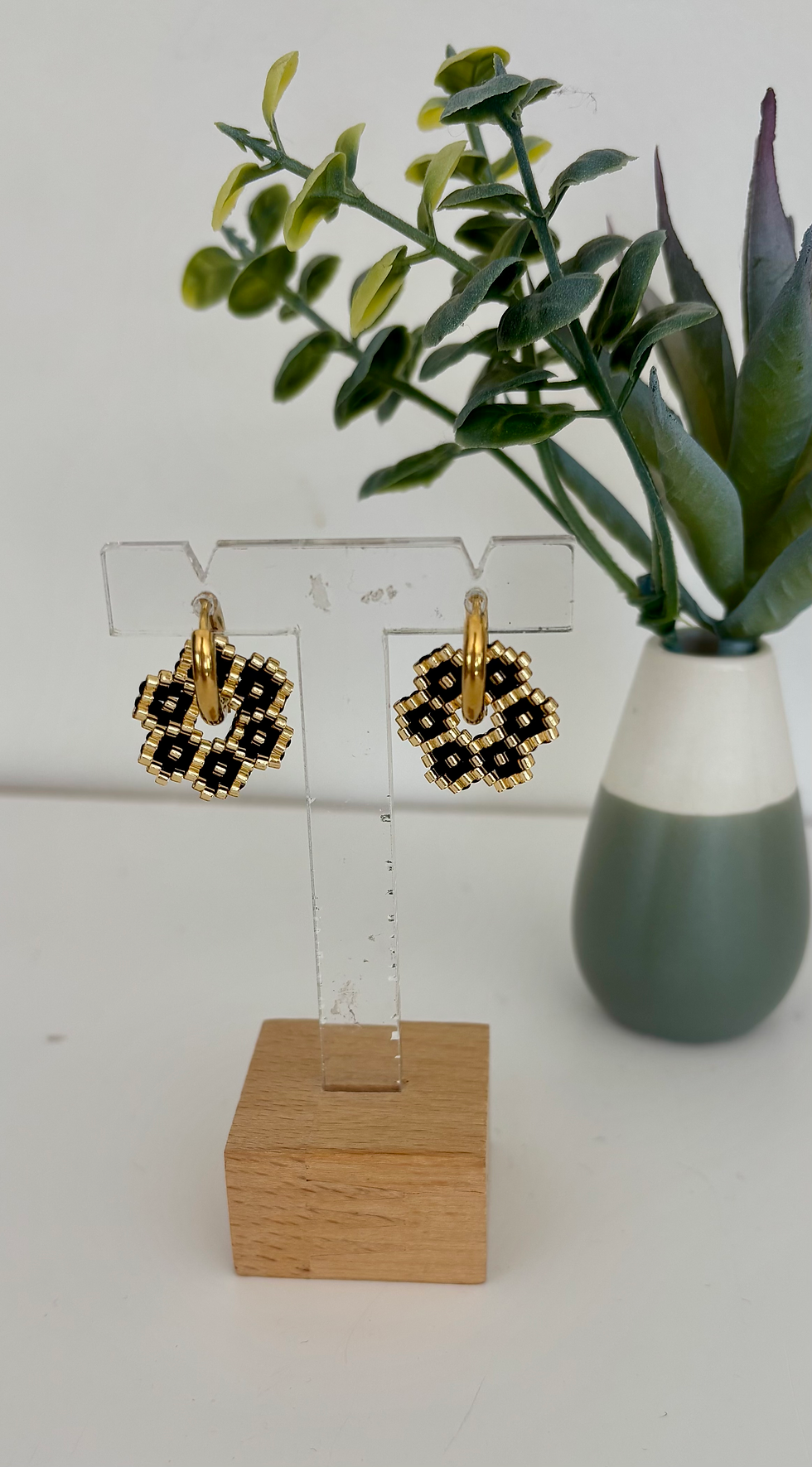 Boucles d'oreilles fleur doré turquoise plaqué or